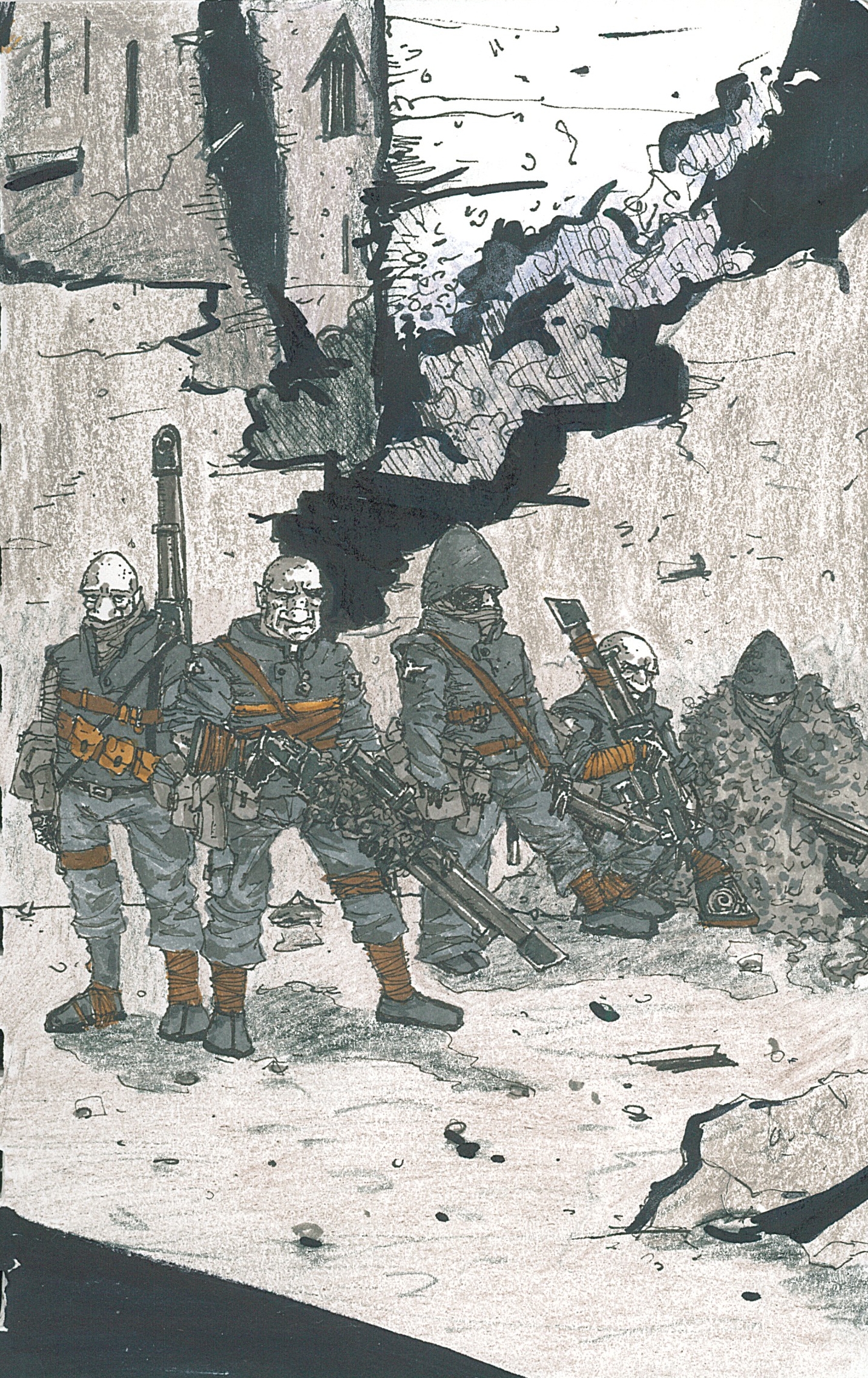 This image is the first concept drawing for some Sverfneblin (Deep Gnome) Snipers. For this project I was asked if I could design and sculpt a squad of alternate Warhammer 40K Ratling snipers based specifically on the Gnome sub-species of Sverfneblin. This project is still in the fairly early stages of development, once I have tinkered a bit more with the overall look of these guys I will start to design the individual miniatures. I will be aiming for a total of five minis in this project, a standard Ratling squad.