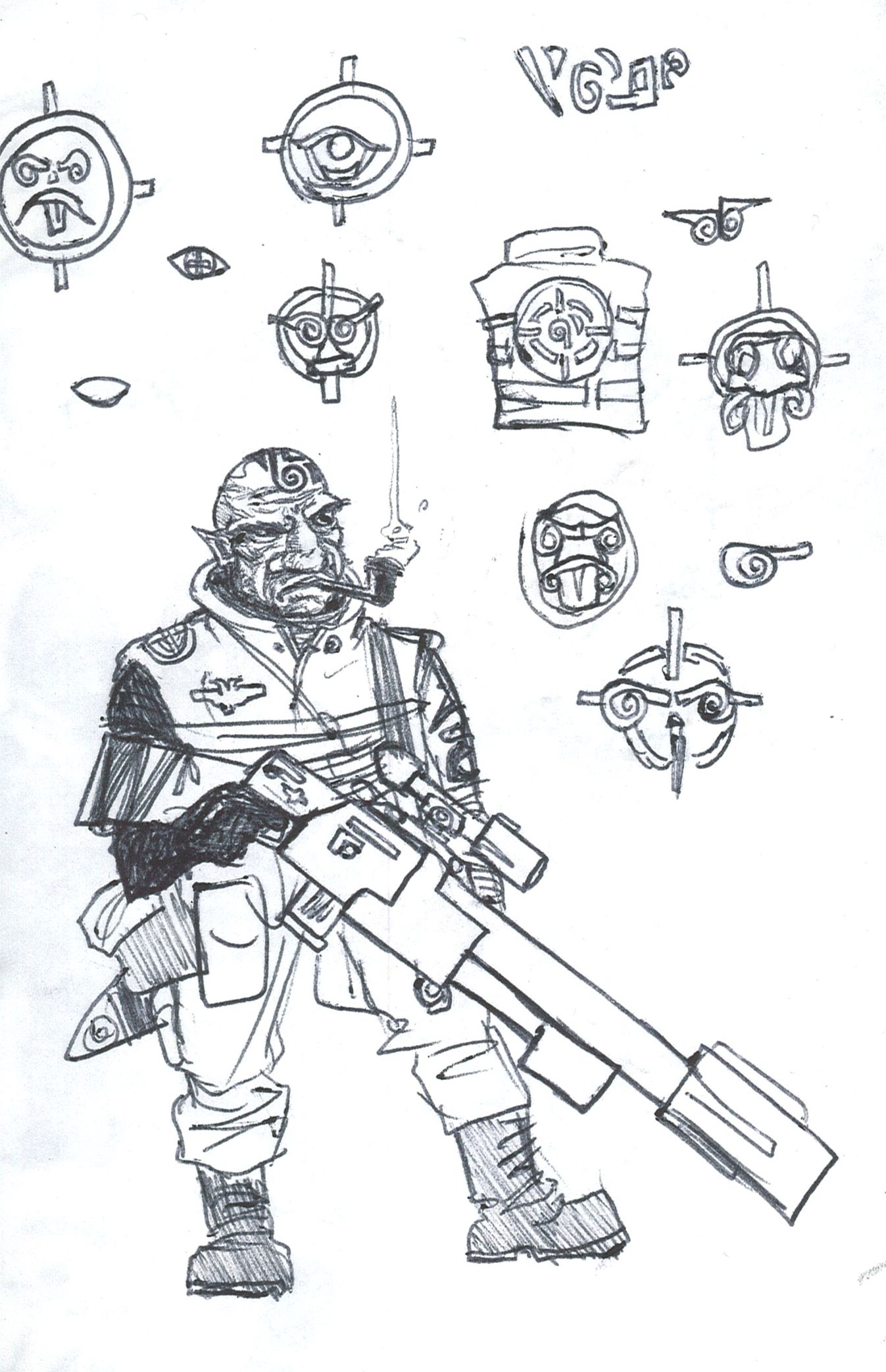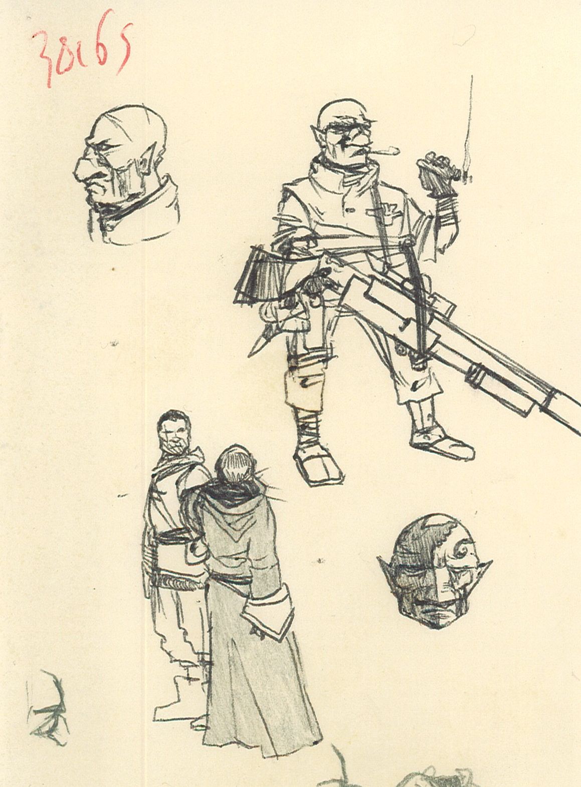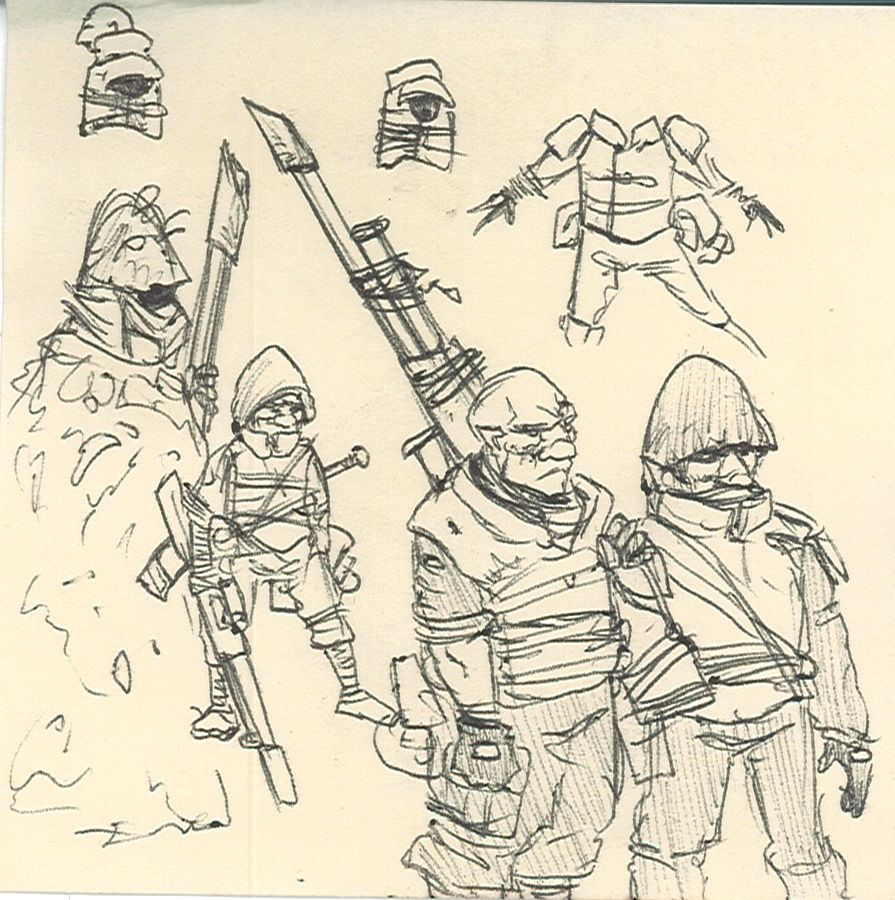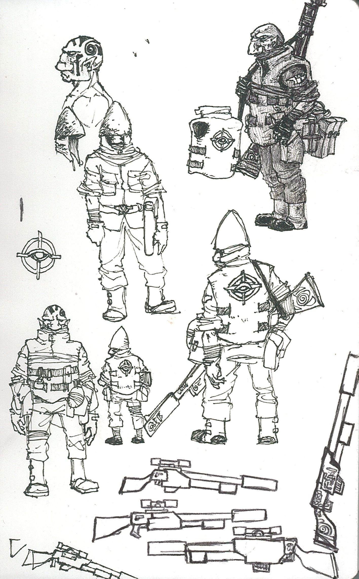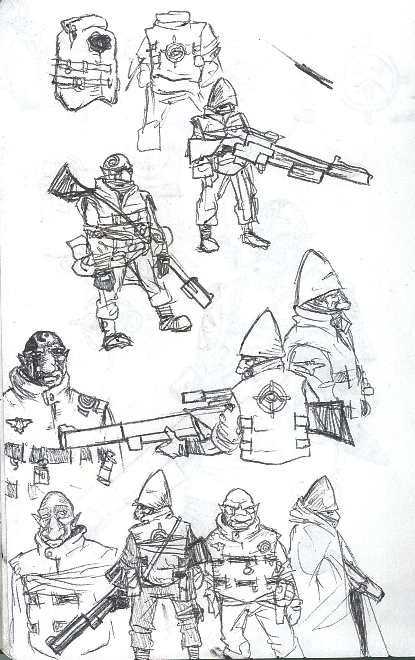 These next few images are a collection of further developemental sketches for the Swerfneblin Snipers. Soon I should be at the actual miniature design stage.